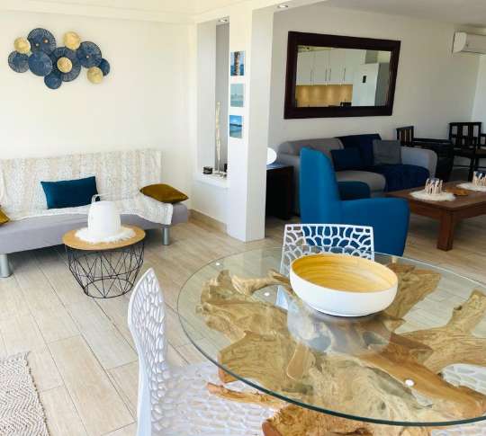 Idéale pour des vacances en famille à Saint Martin (couple avec 2 ou 3 enfants), "Aloé Casa" est constituée d'une chambre parentale, d'un grand séjour/salle à manger (2 lits convertibles), d'une cuisine américaine, d'une terrasse sur le sable/sous les palmiers.